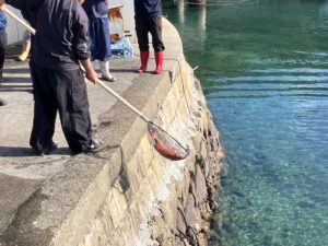 最後に飼ってる真鯛を放流してやるのですが